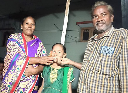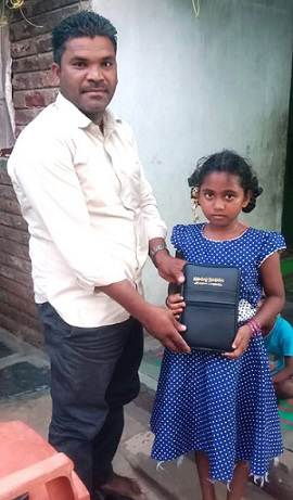ABOVE: Brother Marthababu giving a new Bible to Deborah, who just had her 9th birthday on the 29th of October. Her Daddy abandoned the family: a mother, Deborah and a 5 year old boy. |