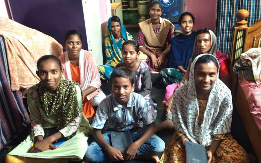 ABOVE: Having a Bible study in Mary & Martha's living/bedroom, Mary & Martha on the front row. There are 2 other sisters in the photo, Sirisha & Prasanna, who we also help with education. The others are relatives joining in for the Bible study. We are so THANKFUL how the Lord is using this ministry to minister to relatives and neighbors, as well as the children we're working with! |