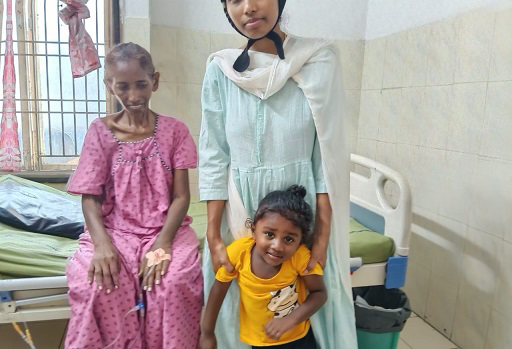 ABOVE: Nagamani (sitting) has cancer, and it's obvious she is in critical condition (I was shocked to see this photo, as she has lost so much weight). The girl standing in this poor photo is Rani with her little boy, Joy. Rani's husband and her sister are trying to get loans to pay for the treatment of this cancer. They are asking for help. If anyone feels led to give for Nagamani's cancer treatment, please do so.