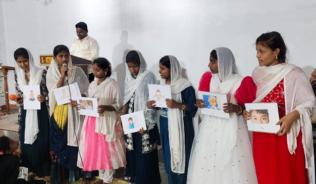 ABOVE: Bhaskara Rao using Swarupa, Mercy, Nandini and Nanditha to teach a lesson at the Bapatla Christmas program. |