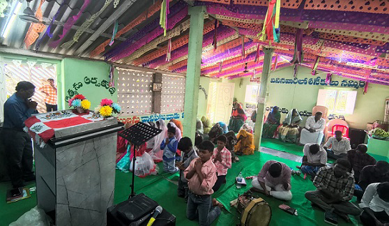 ABOVE: This is Bhaskara Rao leading in prayer in the village of Chilakala Colony. Thanks to our donors, we were able to provide some transportation and snacks in all 5 villages.
