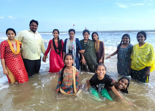 ABOVE: Children having a fun time at the beach with the Daddy of 3 of these girls (who also helps us with transporting people in his auto rickshaw) and Sister Mary on the right, who oversees the girls home. Three of the home children are also in this photo. We're praying the Lord will provide us with sufficient donations so that we can continue to do special occasions and excursions periodically with the children. These events create a very fruitful bonding time between our leaders and the children & families, which ultimately opens doors to be able to counsel them as we build relationships. |